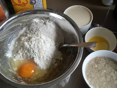 - Tambahkan Tepung, Bahan Optional lainnya dan Telur.